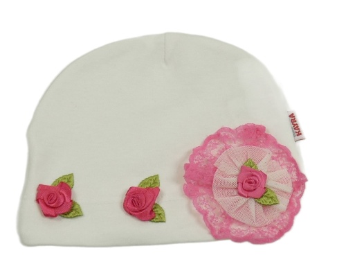 Biela čapica s 3D kvítky a čipkou