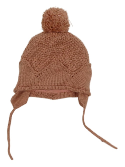 Staroružová vzorovaná pletená čapica s brmbolcom Zara