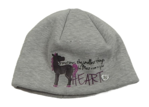 Sivá melírovaná čapica s koněm a nápisom