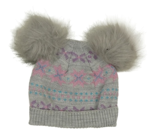 Sivo-ružová vzorovaná čapica s bambulemi