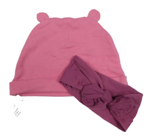 2 set - ružová čepice + fuchsiová čelenka s mašlou