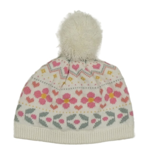 Bielo-ružová vzorovaná pletená čapica s brmbolcom