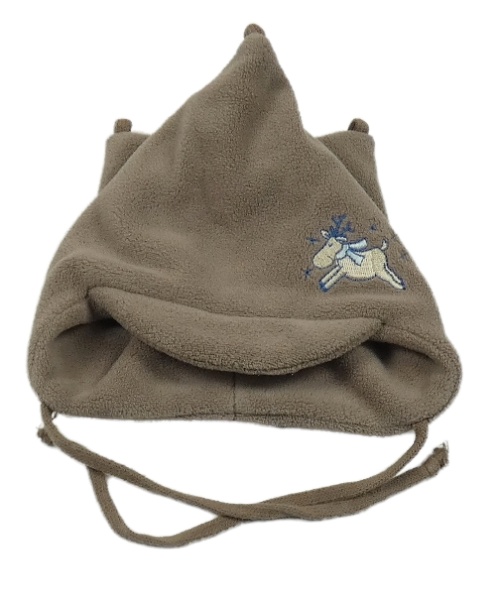 Hnedá plyšová zavazovací čapica so sobom a kšiltem