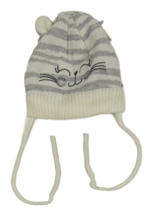 Smetanovo-sivá pruhovaná pletená zavazovací čapica s čumáčkem a uškami Ergee