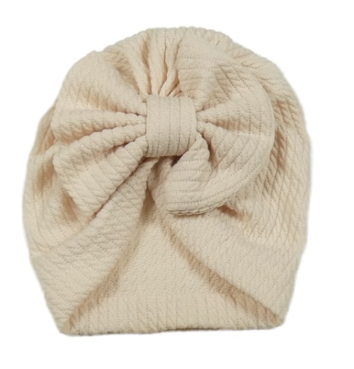 Světlepudrová vzorovaná turbanová čapica s mašlou