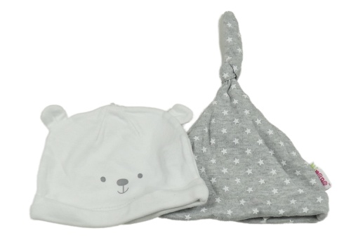 2set - Biela čapica s medvídkem + sivá s hviezdičkami