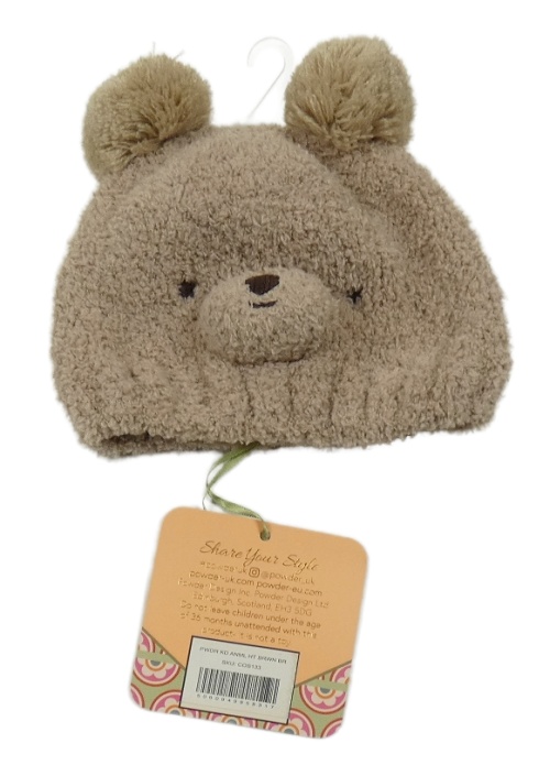 Nové - Hnedá chlpatá čapica s bambulemi - medvěď