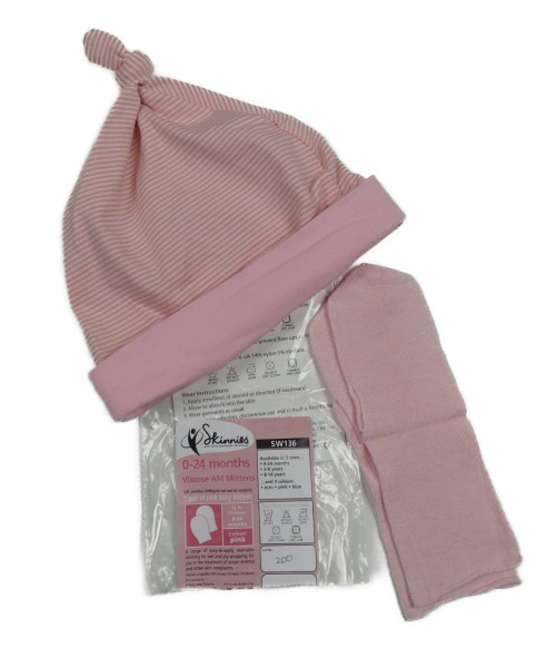 2set - Pruhovaná čepice + růžové ponožky - nové