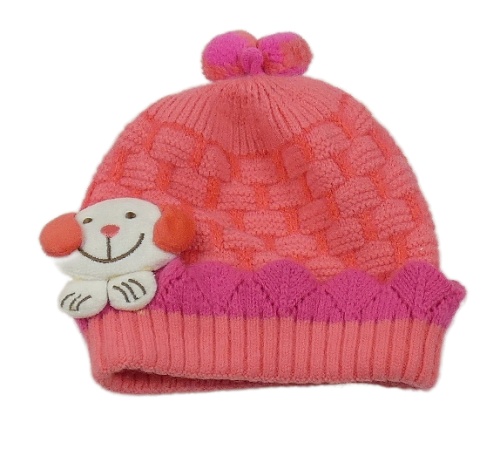 Ružová kockovaná čapica s psíkom