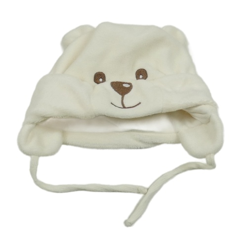 Krémová chlpatá čepice - medvěď