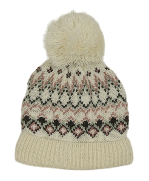 Pudrová pletená vzorovaná čapica s brmbolcom Tu