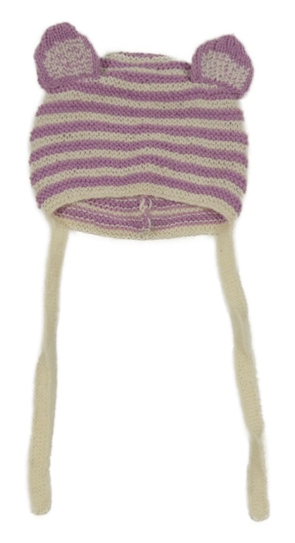 Fialovo-biela pruhovaná pletená čapica s ušima