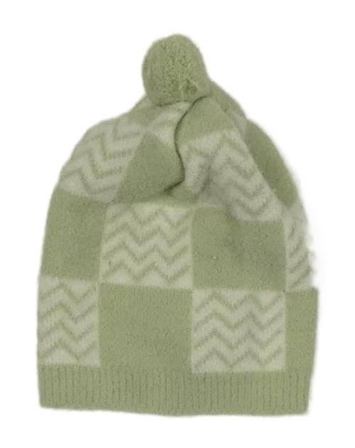 Olivovo-biela kockovaná vzorovaná čapica s bambulkou