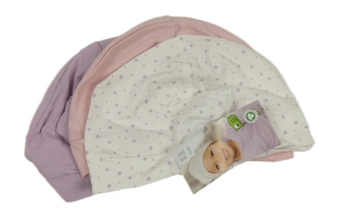 Nové - 3x bavlněná čepice - lila + růžová + bílá bodkovaná Pocopiano