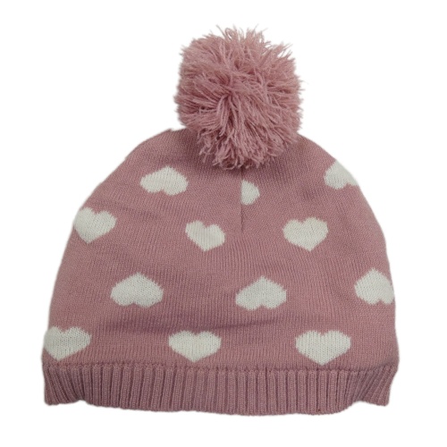 Staroružová podšitá pletená čapica so srdiečkami a brmbolcom Ergee