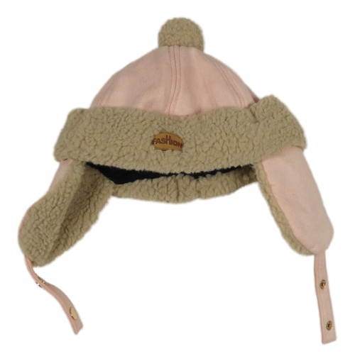Světlerůžová semišová ušanka s nášivkou a brmbolcom