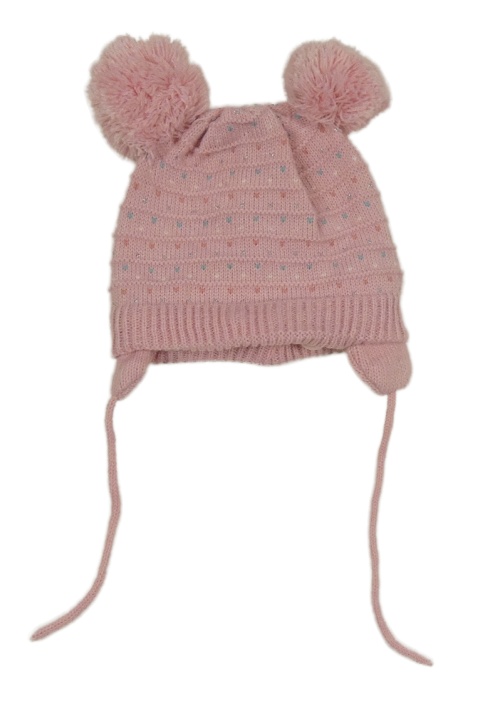 Nové - Ružová vzorovaná pletená čapica s bambulemi Topomini