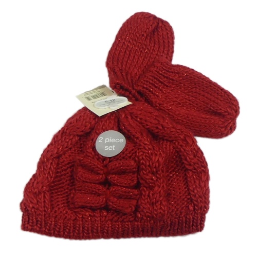 Nové - 2set - Červená třpytivá pletená čepice + rukavice George