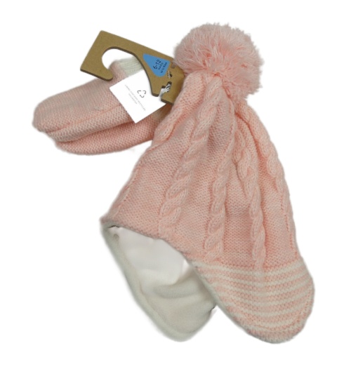 Nové - 2 set - ružová pletená vzorovaná čapica s bambulí + pletené rukavice Nutmeg