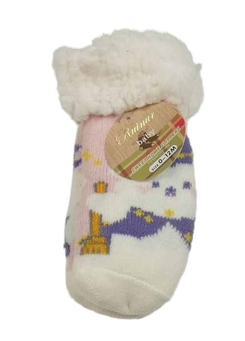 Nové - Svetloružová -biele zateplené protiskluzové ponožky s obrázkom