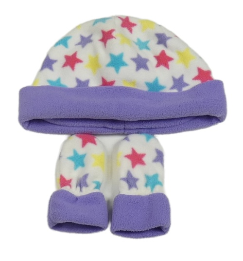 2set - Bielo-fialová fleecová čapica s hvězdičkami + rukavice M&S