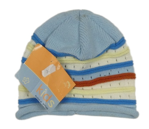 Nové - modro-bielo-žltá pruhovaná vlnená vzorovaná čapica