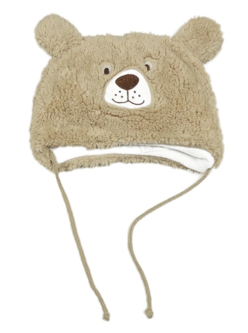 Béžová huňatá podšitá zavazovací čepice - medvedík Ergee