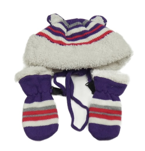 2set - Bílo-fialová pruhovaná čepice + rukavice Mountain Warehouse