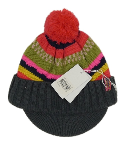 Nové - Antracitovo-farebná pruhovaná čapica s brmbolcom a kšiltem