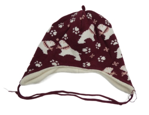 Tmavovínová pletená zavazovací čapica s medvedíkmi PUSBLU