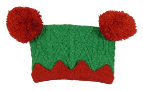 Zeleno-červená pletená čapica s bambulemi Nutmeg