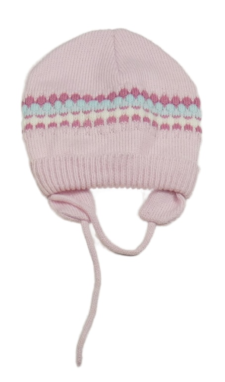 Svetloružová -bielo-modrá čapica so vzorem tkaničkami