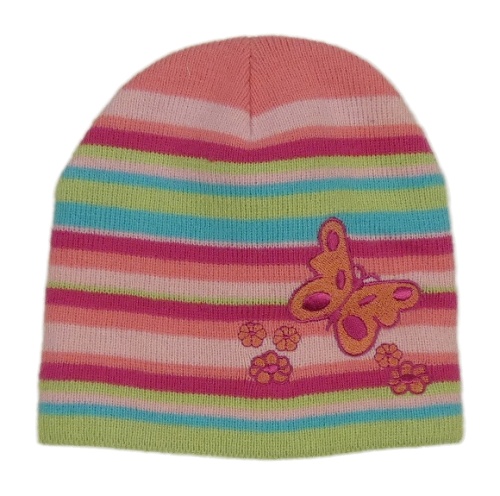 Ružovo-zeleno-modrá pruhovaná pletená čapica s motýlikmi