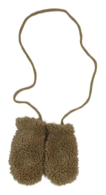 Hnědobéžové huňaté zateplené rukavice so šňůrkou
