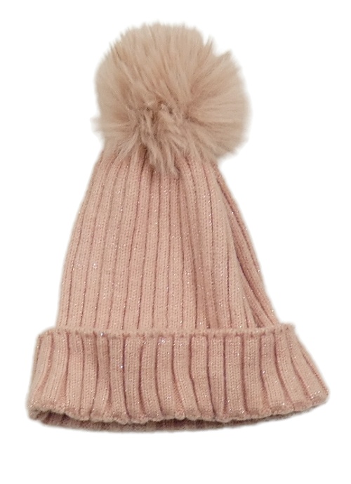 Svetloružová rebrovaná čapica so trblietkami a brmbolcom