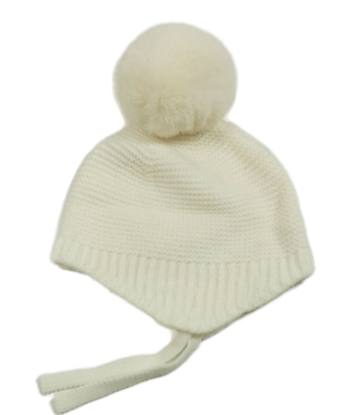 Smotanová pletená čapica s brmbolcom
