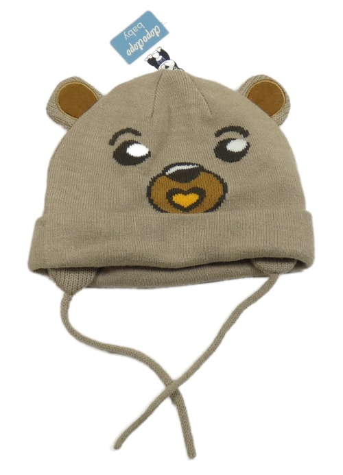 -Nové Béžová pletená podšitá čapica s medvedíkom Dopodopo
