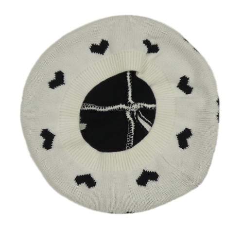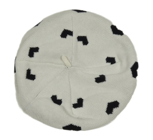 Bielo-čierny pletený baretka so srdiečkami H&M