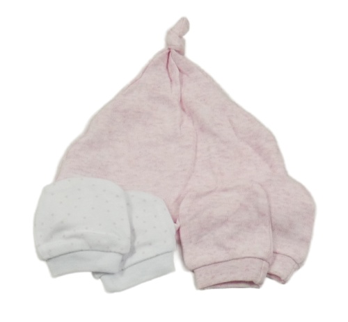 3set - Růžová melírovaná čepice + růžové rukavice + bílo-růžové puntíkaté rukavice
