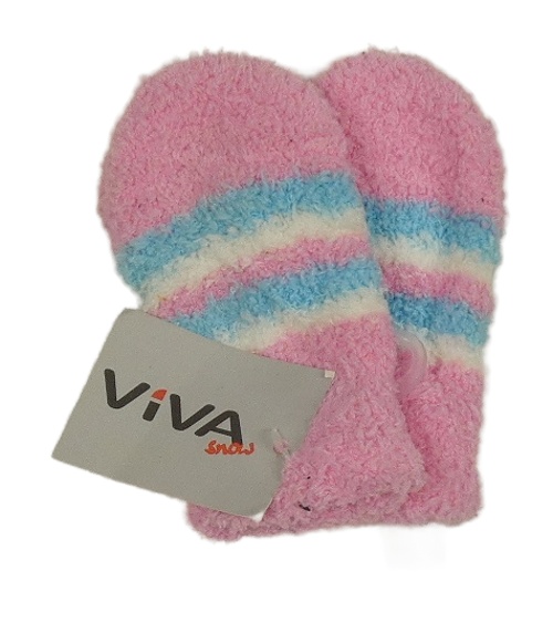 Nové - růžové chlupaté rukavice s modro-bielymi pruhmi Viva