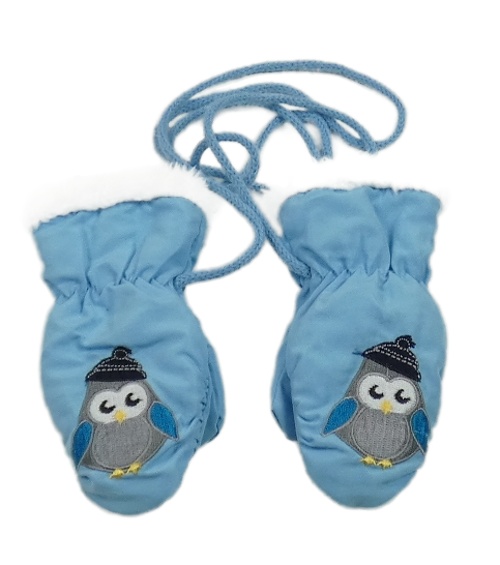 • Světlemodré šusťákové zimní palcové rukavice s tučňáčkem a kožešinou Smile
