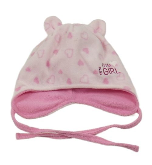 Svetloružová fleecová čapica so srdiečkami a nápisom Ergee