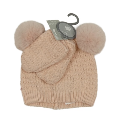 Nové - 2set- svetloružová čapica s bambulemi+ rukavice Primark