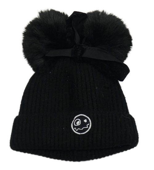 Čierna čapica s bambulemi a smajlíkom
