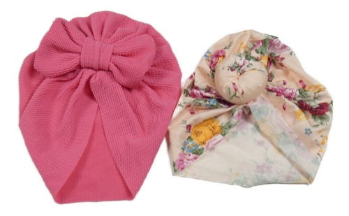 2x - Turbanová čepice - Tmavorůžová vzorovaná, světlepudrová s kvietkami
