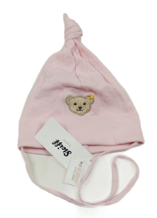 Nové - Svetloružová bavlnená čapica s medvěďom Steiff