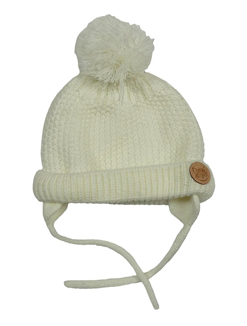 Smotanová pletená čapica s bambuli