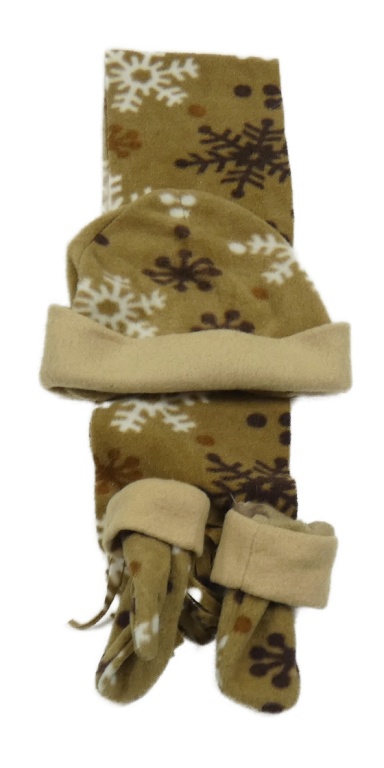 3set - Písková fleecová čepice + šála + rukavice s vločkami