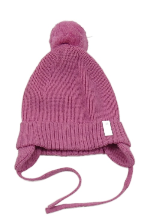 Tmavoružová rebrovaná vlnená zavazovací čapica s brmbolcom