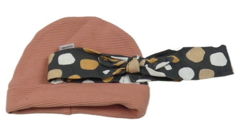 2set- ružová rebrovaná čepice+ sivá bodkovaná á čelenka